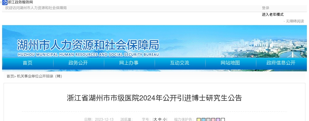 根据《中共湖州市委湖州市人民政府关于实施新时代人才强市战略服务湖州高质量赶超发展的意见》(湖委发〔2020〕8号)等文件精神,结合湖州市市级医院实际,现将2024年公开引进博士研究生的有关事项公告如下: